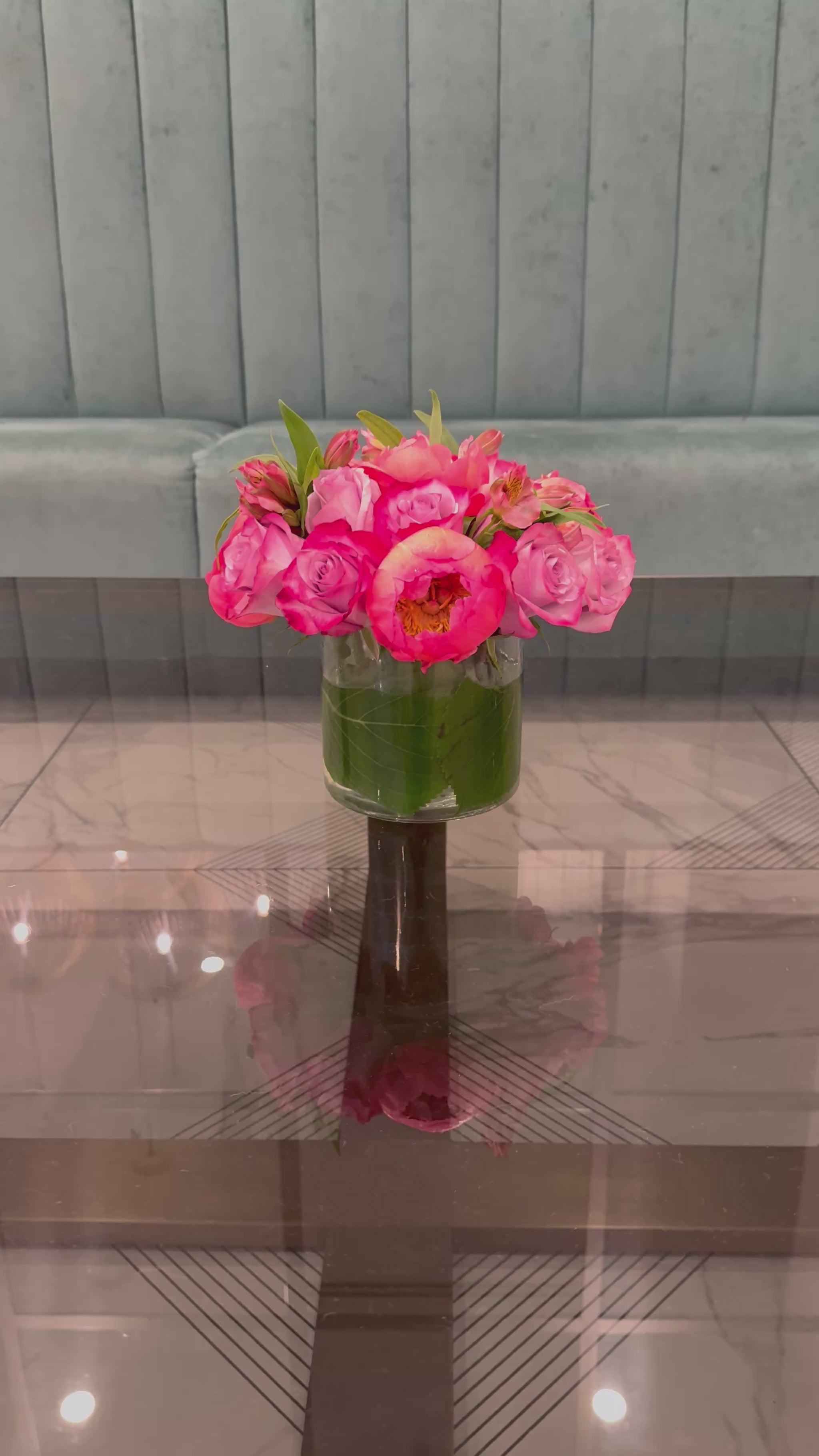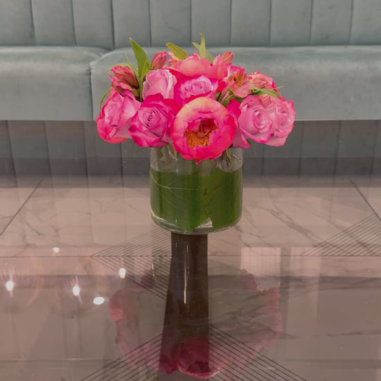 Peony Dreams” is a dreamy blend of soft pink peonies and elegant purple roses, arranged in a clear glass base with a gentle light that enhances its pastel charm. A gift that speaks of love, calm, and deep affection—perfect for someone truly special. Exclusively by Heaven Flowers Miam