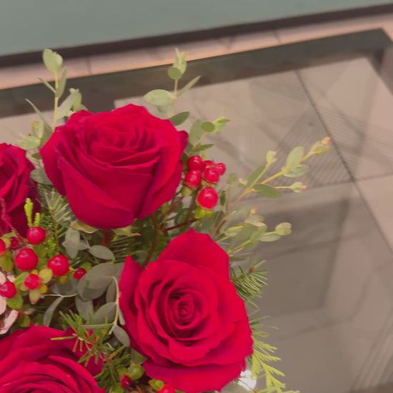 Perfect for gifting or holiday décor, this arrangement captures the richness, romance, and timeless charm of Christmas in every detail.